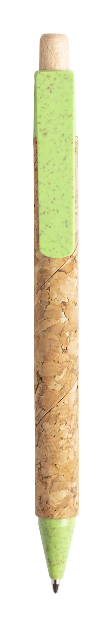 Ekologiczny długopis ze słomy pszenicznej z korpusem pokrytym naturalnym korkiem. Posiada niebieski wkład.
