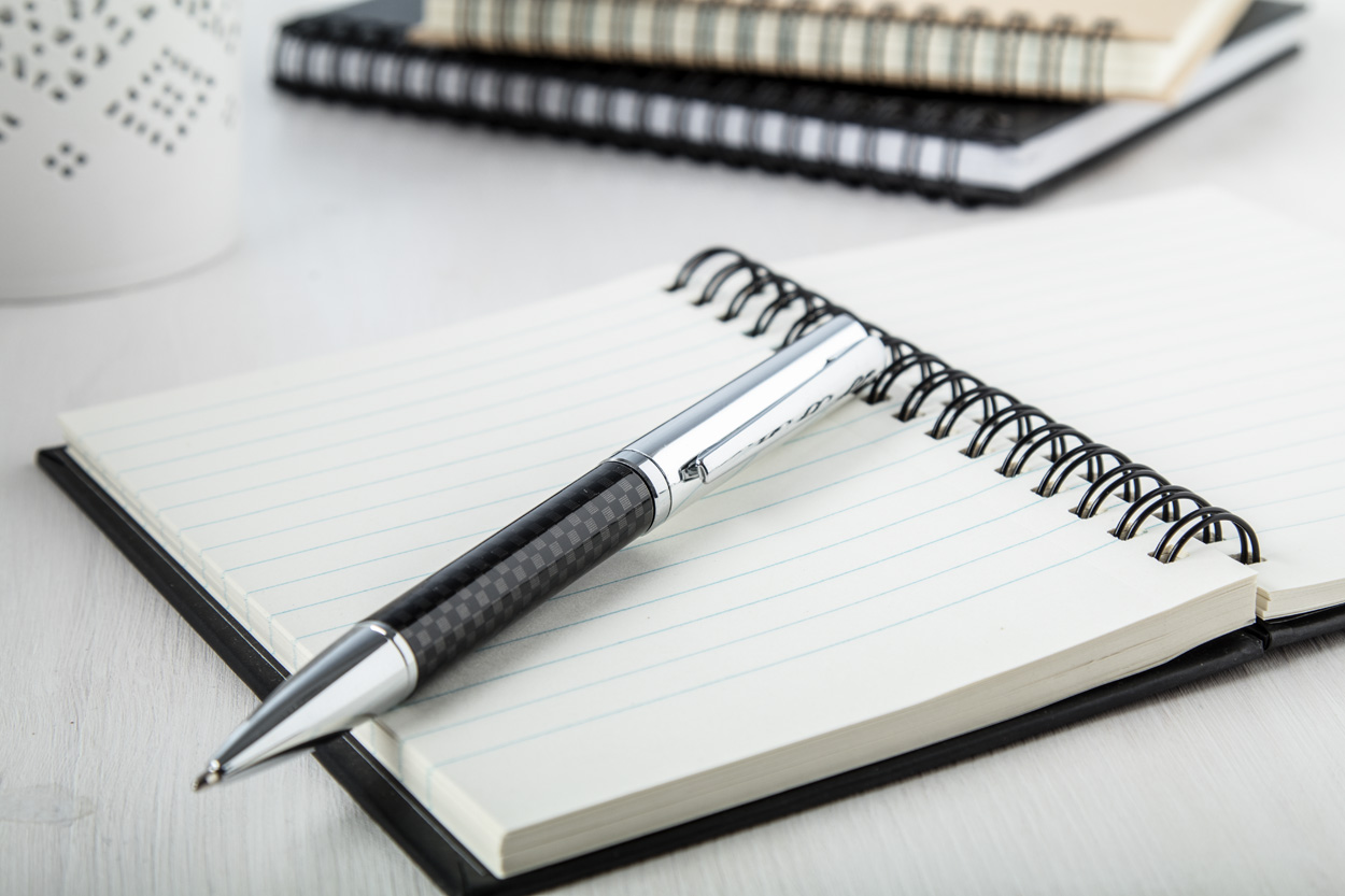 Metalowy długopis, niebieski wkład.