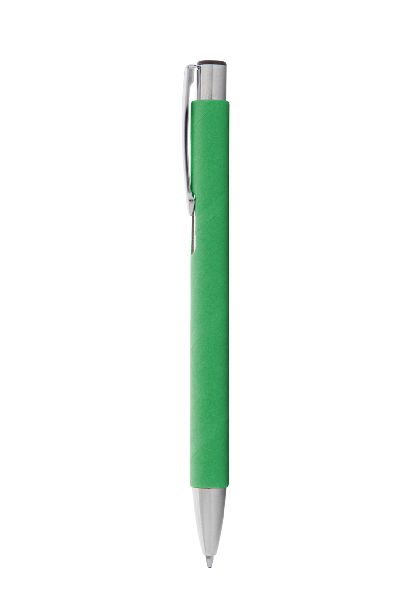 Długopis z papieru z makulatury metalowymi elementami. Z niebieskim wkładem.