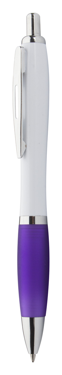 Plastikowy biały długopis z kolorowym uchwytem i chromowymi wykończeniami. Z niebieskim wkładem.