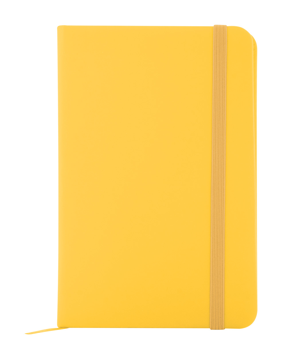 Notes pokryty skórą PU z recyklingu, zawierający 100 czystych kartek z papieru pochodzącego z recyklingu. Z dopasowaną kolorystycznie zakładką i gumką. Rozmiar A6.