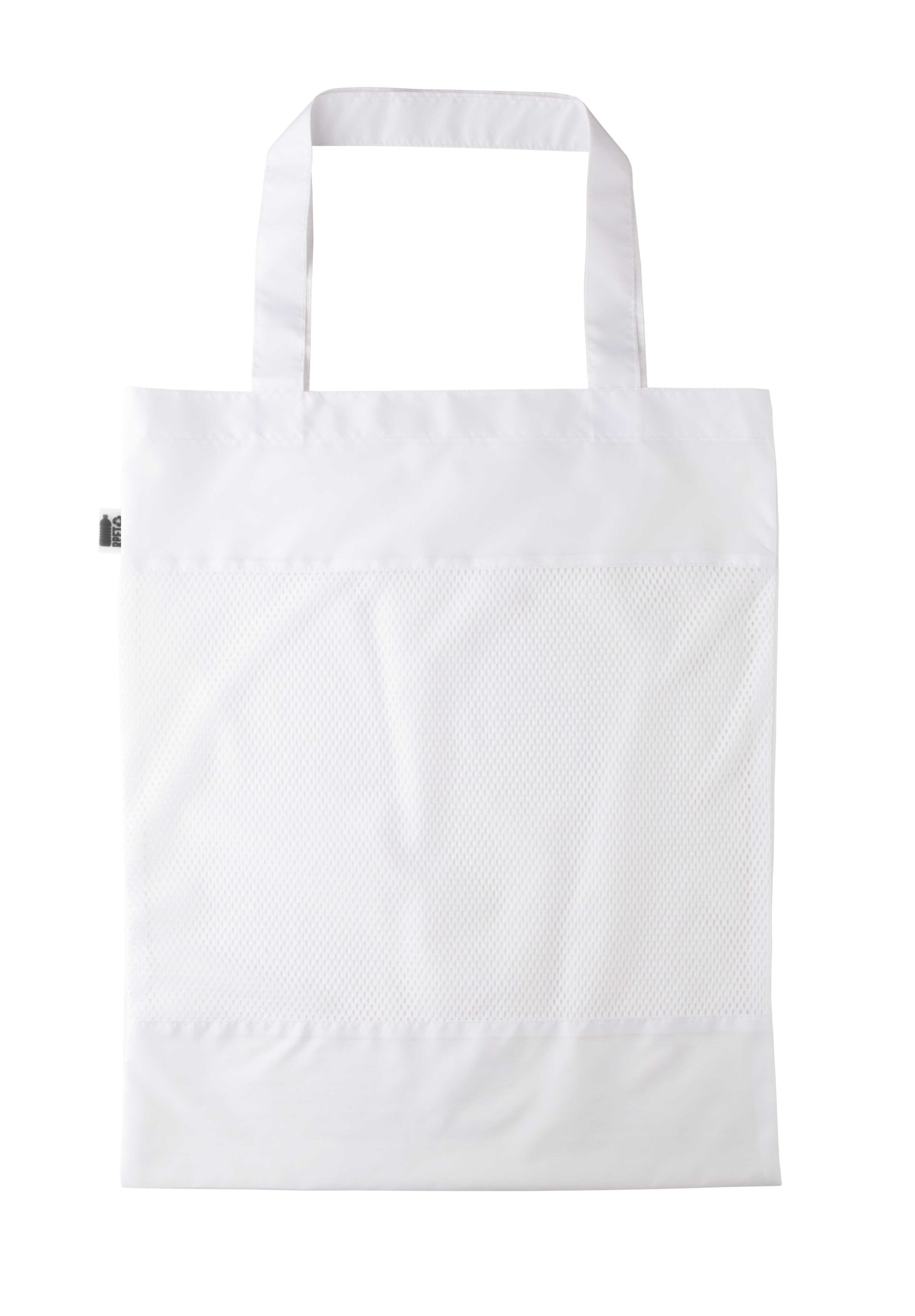 Personalizowana torba na zakupy z poliestru 190T RPET, z przodem z siatki poliestrowej i długimi uchwytami. Z nadrukowaną grafiką sublimacyjną na całej powierzchni (z wyłączeniem części siatkowej). Z metką RPET. Min. ilość: 50 szt.