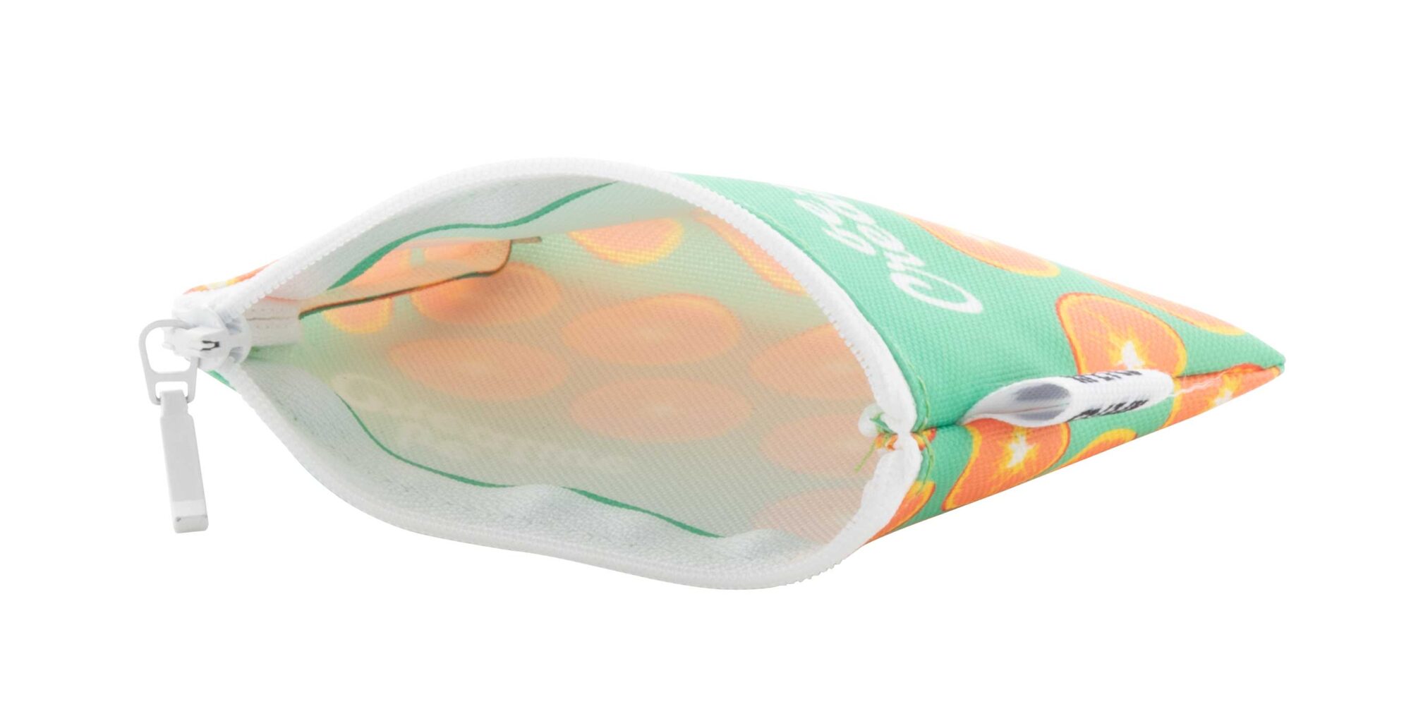 Personalizowana torebka zapinana na zamek z poliestru 600D RPET. Z charakterystyczną metką RPET i nadrukowaną na całej powierzchni grafiką sublimacyjną. Min. ilość: 50 szt.