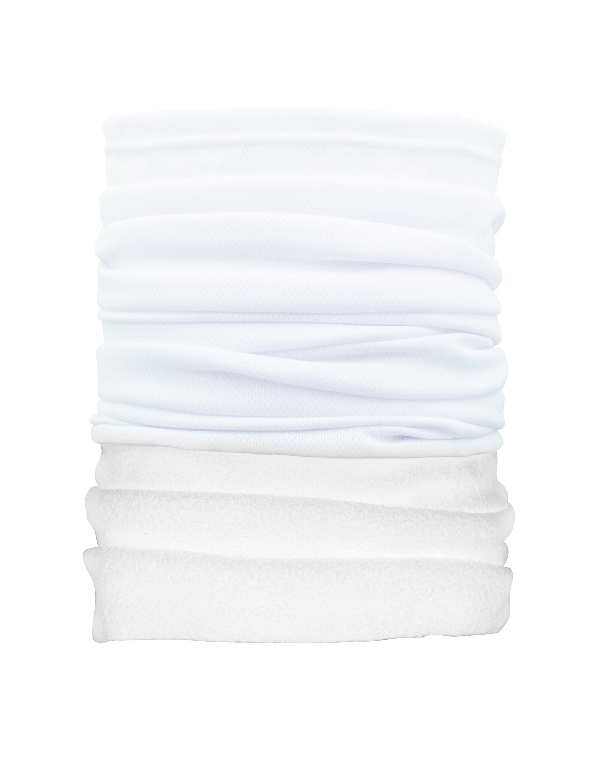 Personalizowany, uniwersalny komin z szybkoschnącego poliestru, z ocieplaczem na szyję z kolorowego polaru. Z nadrukowaną grafiką sublimacyjną na całej powierzchni poliestrowej części. Wykonany w 100% z poliestru (135g/m²) i polaru (160g/m²). Min. ilość: 100 szt.