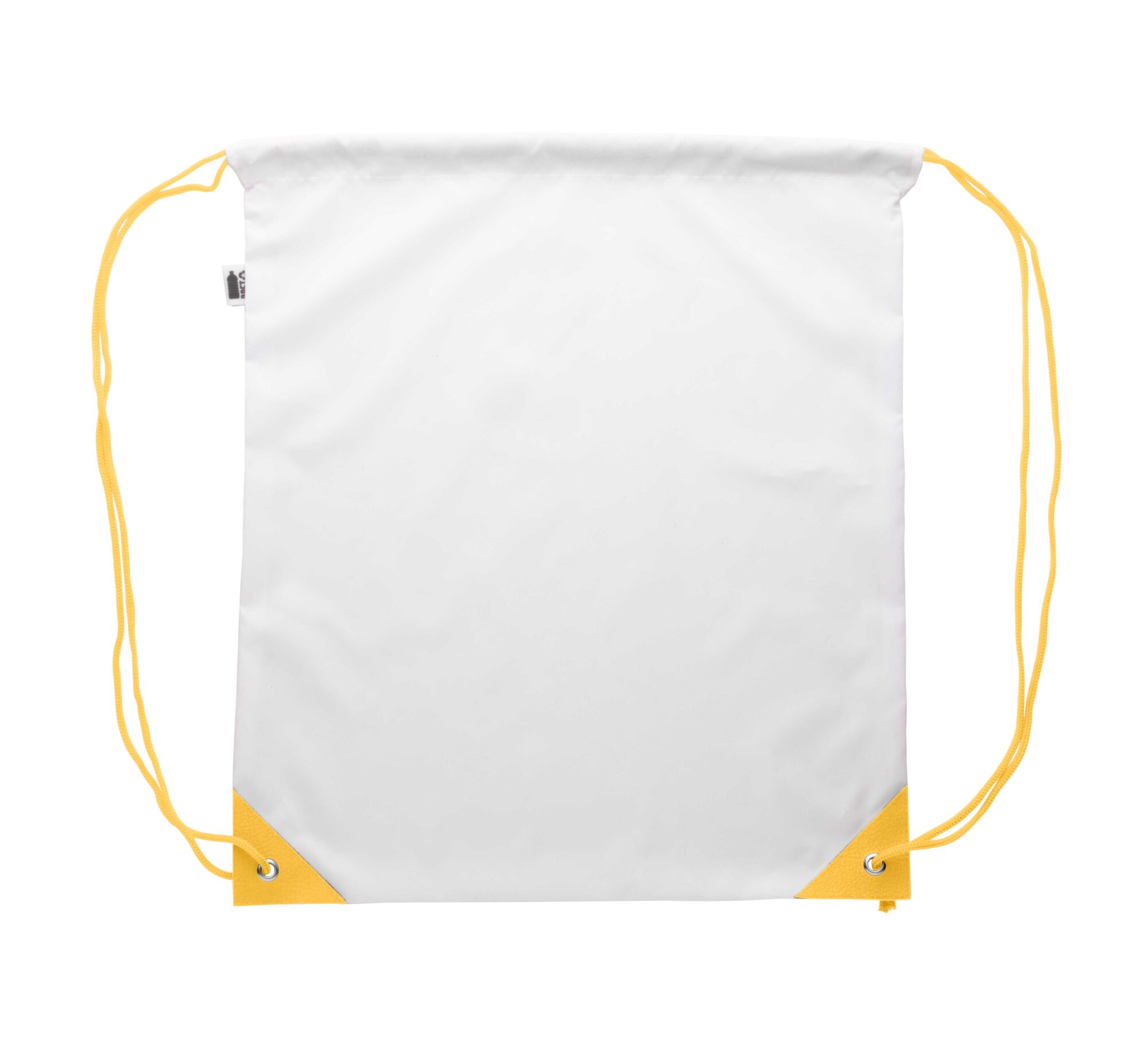 Personalizowany worek ze sznurkami ze wzmocnionymi rogami ze skóry PU i sznurkami w tym samym kolorze, poliester 190T RPET. Z nadrukowaną grafiką sublimacyjną i metką RPET. Min. ilość: 50 szt.