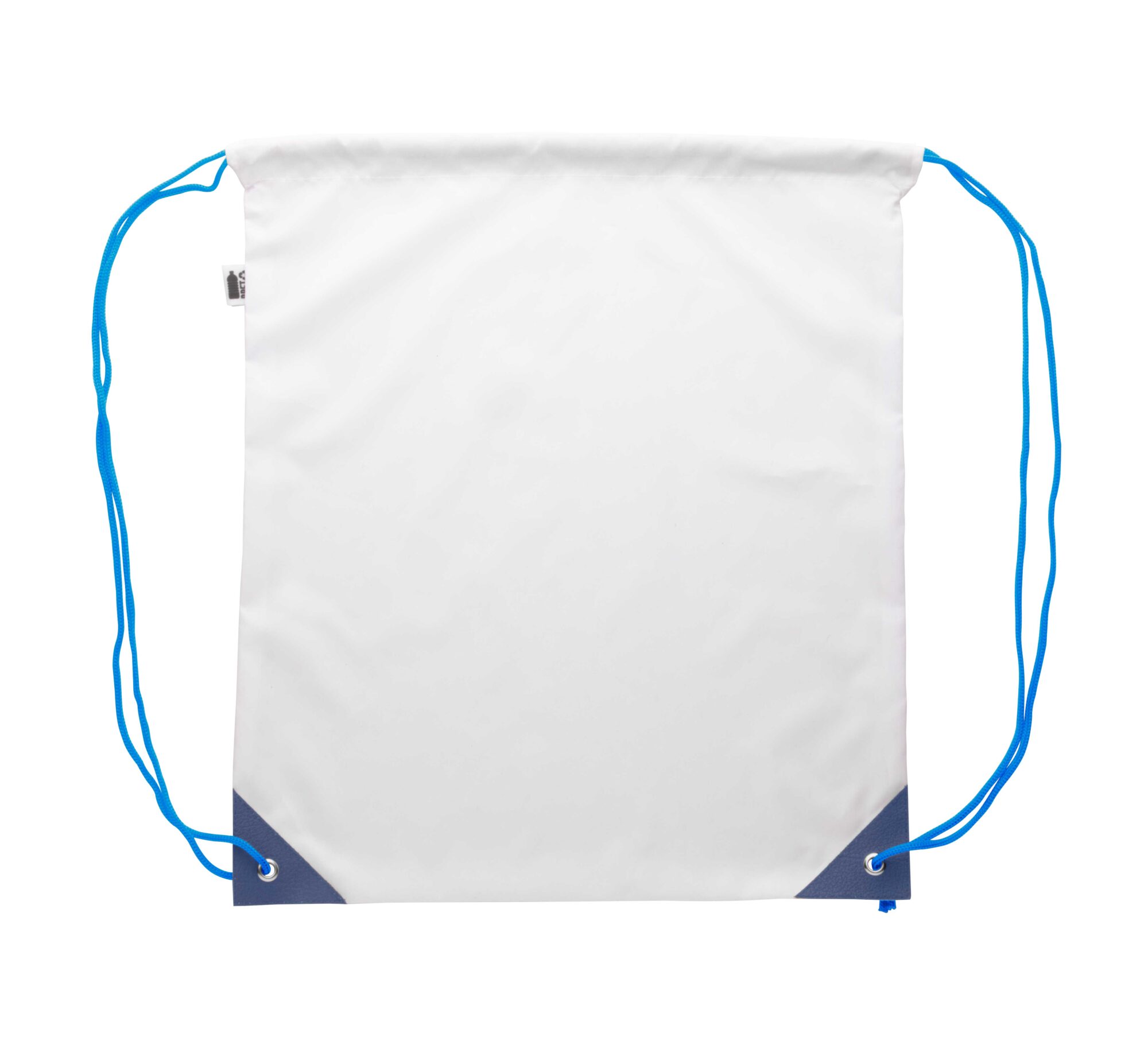 Personalizowany worek ze sznurkami ze wzmocnionymi rogami ze skóry PU i sznurkami w tym samym kolorze, poliester 190T RPET. Z nadrukowaną grafiką sublimacyjną i metką RPET. Min. ilość: 50 szt.