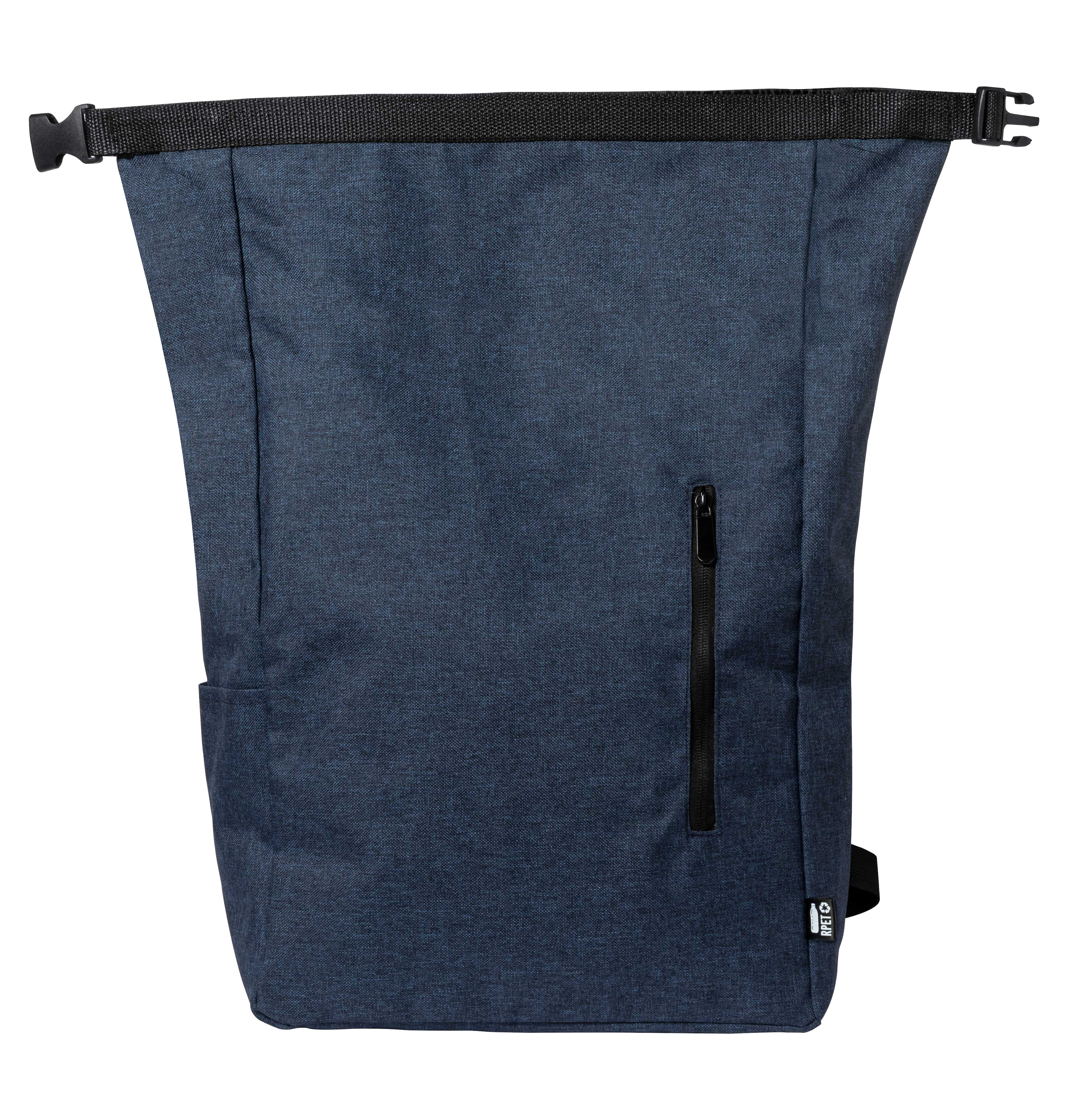 Wodoodporny, zwijany plecak z RPET z boczną kieszenią, przednią kieszenią zapinaną na zamek, wyściełanym tyłem i paskami na ramiona. Z charakterystyczną metką RPET. Poliester 300D RPET.