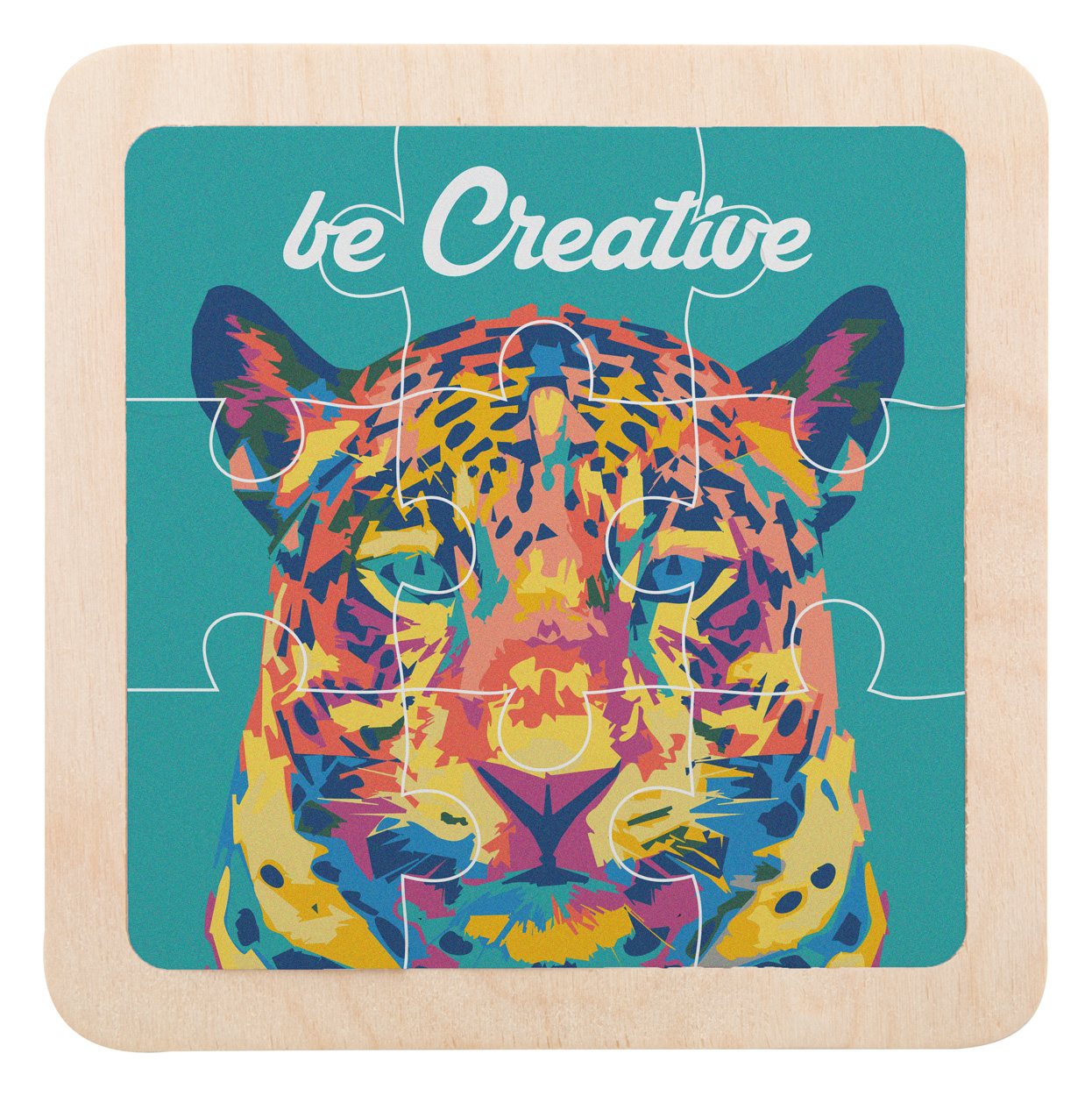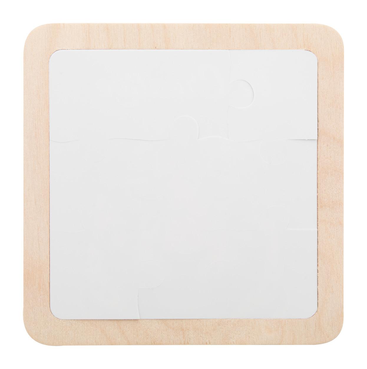 9-elementowe plastikowe puzzle z własną grafiką na laminowanej podkładce z drewna brzozowego. Cena obejmuje druk UV LED. Minimalne zamówienie: 100 szt.