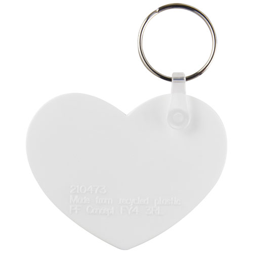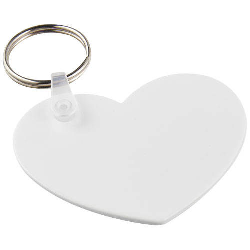 Biały łańcuch do kluczy w kształcie serca z metalowym pękiem na klucze. Metalowy pierścień cechuje płaski profil, który idealnie nadaje się do wysyłek.