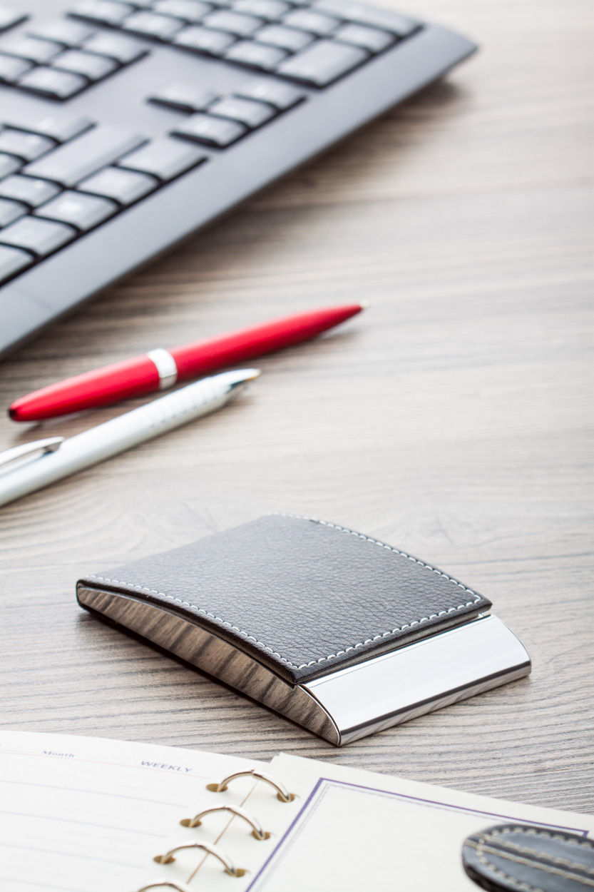 Elegancki wizytownik André Philippe pokryty eko skórą. Produkt zapakowany w czarne, kartonowe pudełko André Philippe.