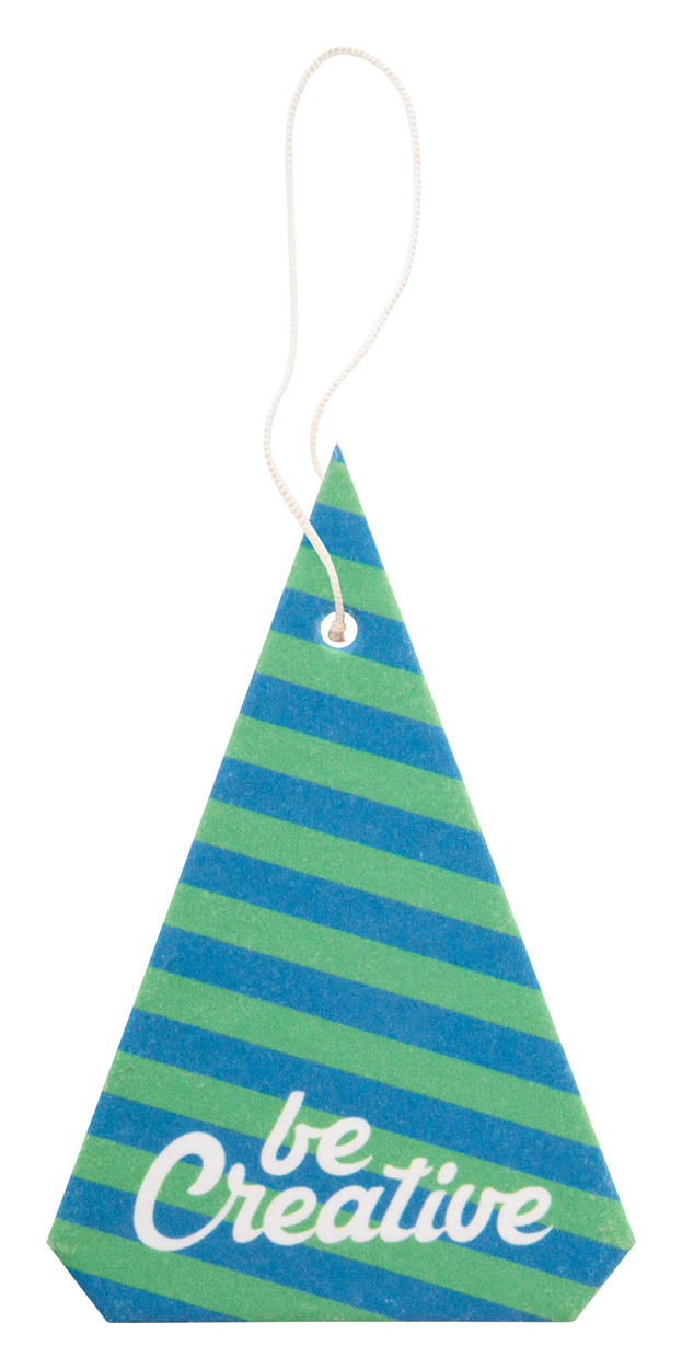 Personalizowany zapach do samochodu o indywidualnym kształcie i zapachu (exotic, fresh, zielone jabłko, cytryna, nowe auto, ocean, truskawka, brzoskwinia, wanilia). Znakowanie do 4 kolorów CMYK po obu stronach. Min. ilość. 250 sztuk.